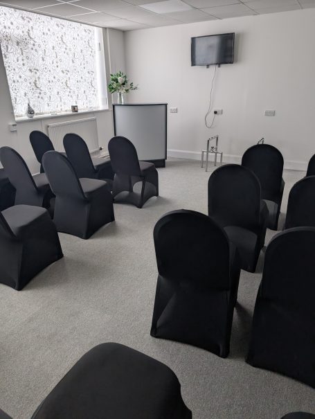 Our service chapel for a local service, including a screen for displaying pictures and memories of your loved one , music system and a refreshment area.